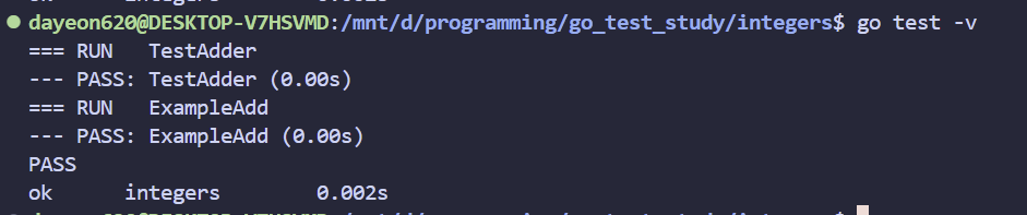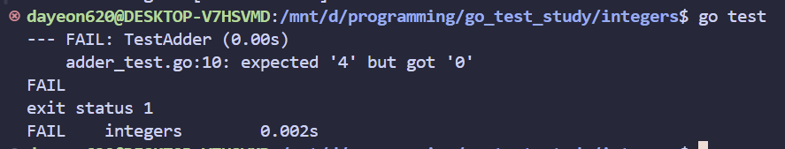 adder.go 파일을 다음과 같이 작성하고 테스트를 실행해보자