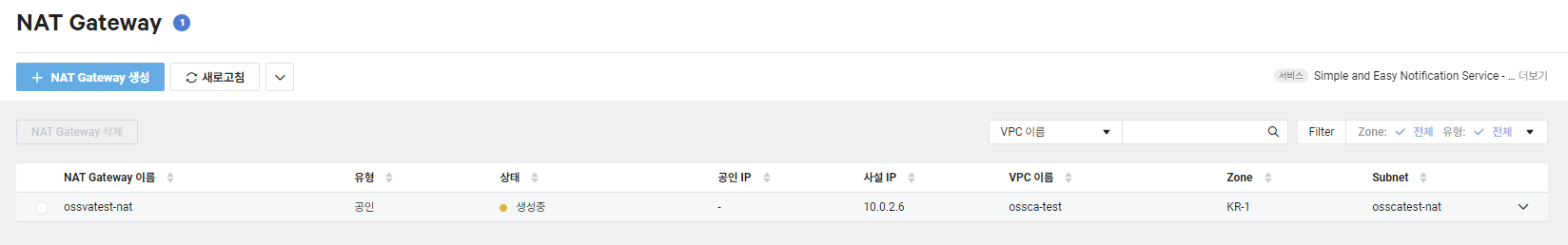 이전 개념에서 본것처럼 NAT Gateway를 통해 내부에서 외부 통신이 가능하도록 할것이다. 이를 위해서는 다음과 같은 절차를 따르자.