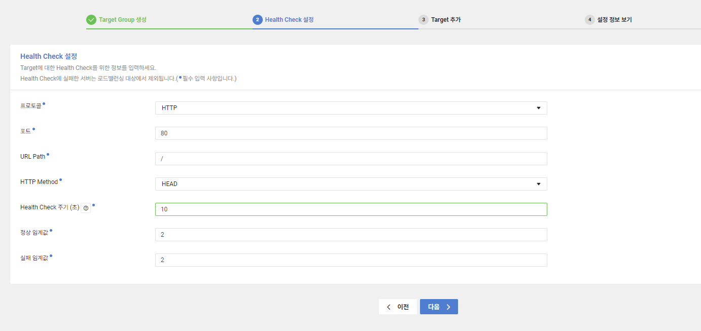 ⇒ 정상임계값 : 해당 서버로 헬스체크를 했을 때 2번 성공이면 성곡이라 판단 / 실패도 마찬가지