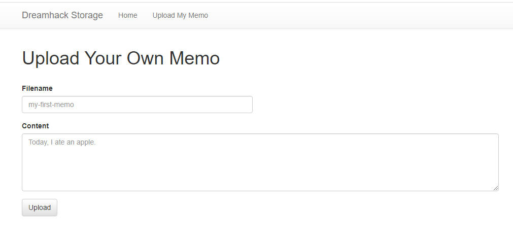 문제에서 제시한 링크를 타고 접속을 하면 다음과 같은 화면이 뜬다. 우선 메모를 업로드를 하라고 하니 upload my memo에 들어가서 어떻게 이 web이 구성되어있는지 파악해보고자 한다.