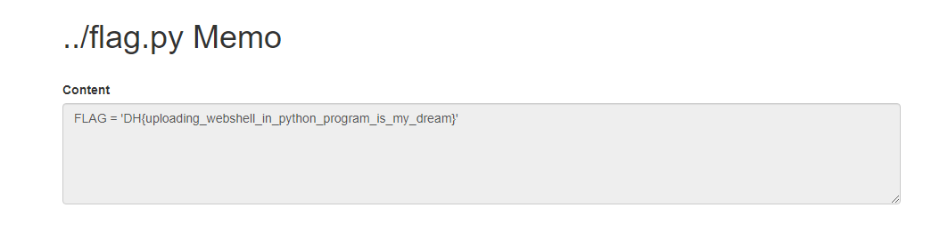 비슷하게 없는 메모를 입력했을때에는 이런 창이 뜬다. 여기서 이제 flag.py를 얻어내야하는데, 어떤 방법이 있을지 고민하다가 우선 주소창에 입력하면 되지 않을까 하고 다음과 같은 값을 name=뒤에 입력해 보았다